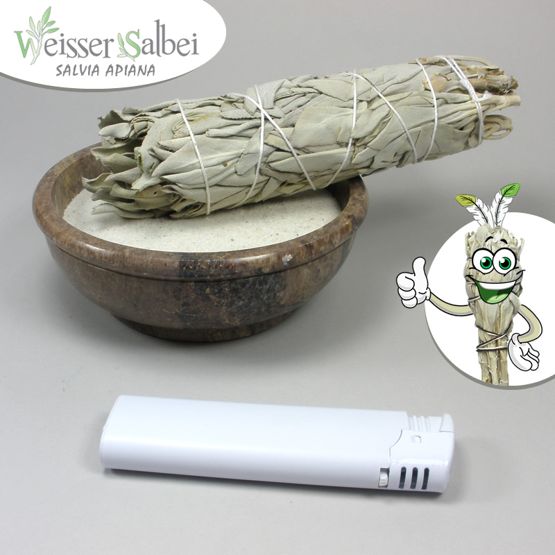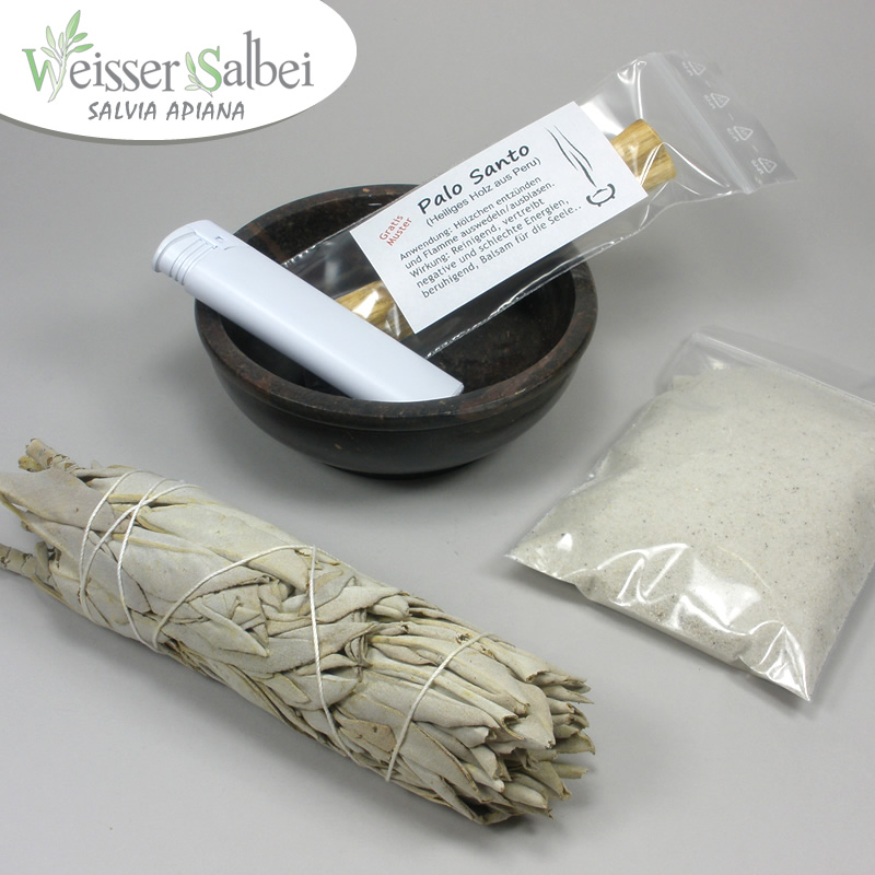 Kleines Reinigungs-Räucherset mit weissem Salbei um Wohnung, Zimmer, andere Räume, Gegenstände oder sich selber energetisch zu reinigen.