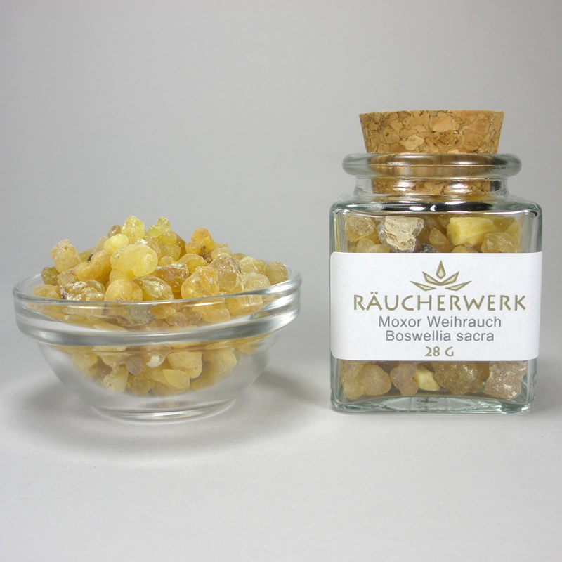 Moxor-Weihrauch aus Somalia - Wird gerne für die atmosphärische Reinigung verwendet, da er auch negative Energien in Räumen vertreiben und klären kann. Sein fruchtig-zitroniges Aroma hat eine energetisierende Wirkung auf Körper, Geist und Seele. Moxor kann für Meditation, Entspannung oder Rituale und Zeremonien verräuchert werden. Er soll auch Angstgefühle lösen und zu Vitalität und neuer Kraft führen.